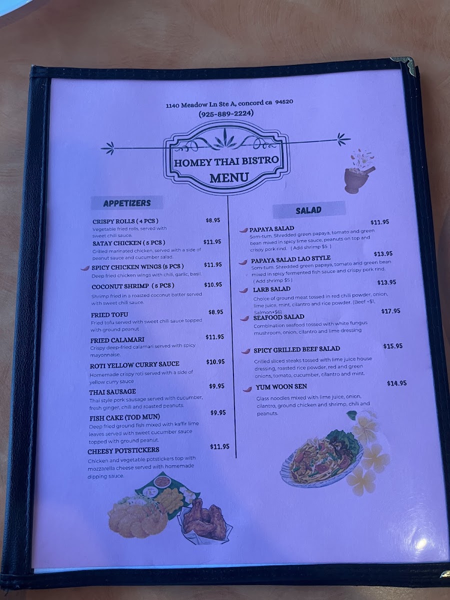 If you're in the mood for authentic Thai flavors with a cozy vibe, the Homey Thai Bistro Menu is sure to satisfy. Nestled at 1140 Meadow Ln Ste A in Concord, CA, this charming spot offers a range of mouthwatering dishes that will take your taste buds on a journey straight to Thailand. From the aromatic curries to the flavorful stir-fries, every dish is crafted with fresh ingredients and bold spices. Whether you're craving a comforting bowl of Pad Thai, a fragrant green curry, or something new to explore, the menu has something for everyone. With a relaxed atmosphere and friendly service, it's the perfect place to unwind and enjoy a hearty meal.